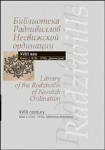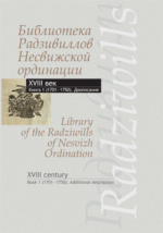 Библиотека Радзивиллов Несвижской ординации: каталог изданий из фонда Центральной научной библиотеки имени Якуба Коласа Национальной академии наук Беларуси, XVIII век : библиографическое издание / сост. М. М. Лис, отв. сост. А. В. Стефанович, ред. библиогр. зап. Е. М. Бандюк, Национальная академия наук Беларуси, Центральная научная библиотека им. Якуба Коласа. - Минск : Белорусская наука, 2023. - 305 с. - ISBN 978-985-08-2965-8 .