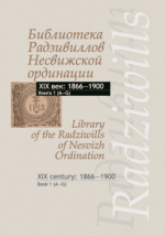 Библиотека Радзивиллов Несвижской ординации: каталог изданий из фондов Центр. научной библиотеки им. Якуба Коласа Национальной академии наук Беларуси. XIX век: 1866—1900 : библиографическое издание / сост. М. М. Лис, отв. сост. А. В. Стефанович, Национальная академия наук Беларуси, Центральная научная библиотека им. Якуба Коласа. - Минск : Беларуская навука, 2018. - 801 с. - ISBN 978-985-08-2369-4. – ISBN 978-985-08-2370-0 (кн. 1) .