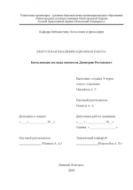 Богословские взгляды святителя Димитрия Ростовского: выпускная квалификационная работа : студенческая научная работа / Нижегородская духовная семинария, Кафедра библеистики, богословия и философии. - Нижний Новгород, 2019. - 66 с.
