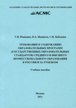 Требования к содержанию образовательных программ: (государственных образовательных стандартов) среднего и высшего профессионального образования в России и за рубежом : учебное пособие / В. А. Новиков, С. В. Бабыкин. - Москва : Академия стандартизации, метрологии и сертификации, 2011. -