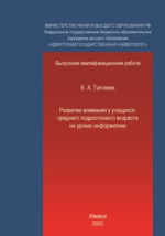 Развитие внимания у учащихся среднего подросткового возраста на уроках информатики : студенческая научная работа / В. А. Туктаева ; Удмуртский государственный университет, Институт педагогики, психологии и социальных технологий, Кафедра теории и методики технологического и профессионального образования. - Ижевск : б. и., 2022. -86 с.