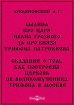 Былина про царя Ивана Грозного да про князя Трифона Патрикеева. Сказание о том, как построена церковь св. великомученика Трифона в Москве / А. Г. Лукьяновский. - Москва : Типография Л. и А. Снегиревых, 1887. -