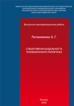 Субъективная модальность телевизионного репортажа: выпускная квалификационная работа (магистерская диссертация) : студенческая научная работа / А. Г. Литвиненко ; Министерство образования Московской области, Московский государственный областной университет, Факультет русской филологии, Кафедра современного русского языка. - Москва, 2016. -