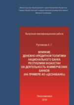 Влияние денежно-кредитной политики Национального Банка Республики Казахстан на деятельность коммерческих банков: (на примере АО «Цеснабанк») : студенческая научная работа / А. Г. Руспекова ; Северо-Казахстанский государственный университет им. Манаша Козыбаева. - Петропавловск : б. и., 2019. -