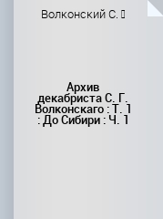 Волконский, С. Г. Архив декабриста С. Г. Волконскаго / С. Г. Волконский ; под редакцией С. М. Волконского, Б. Л. Модзалевсого. — Санкт-Петербург : Невская ЦБС, 1918 — Том 1 : До Сибири : Ч. 1 — 1918. — 618 с.