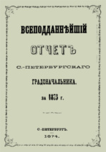 Всеподданнейший отчет С.-Петербургского градоначальника за 1873 г . — Санкт-Петербург : ЦГПБ им. В.В. Маяковского, 1874. — 170 с.